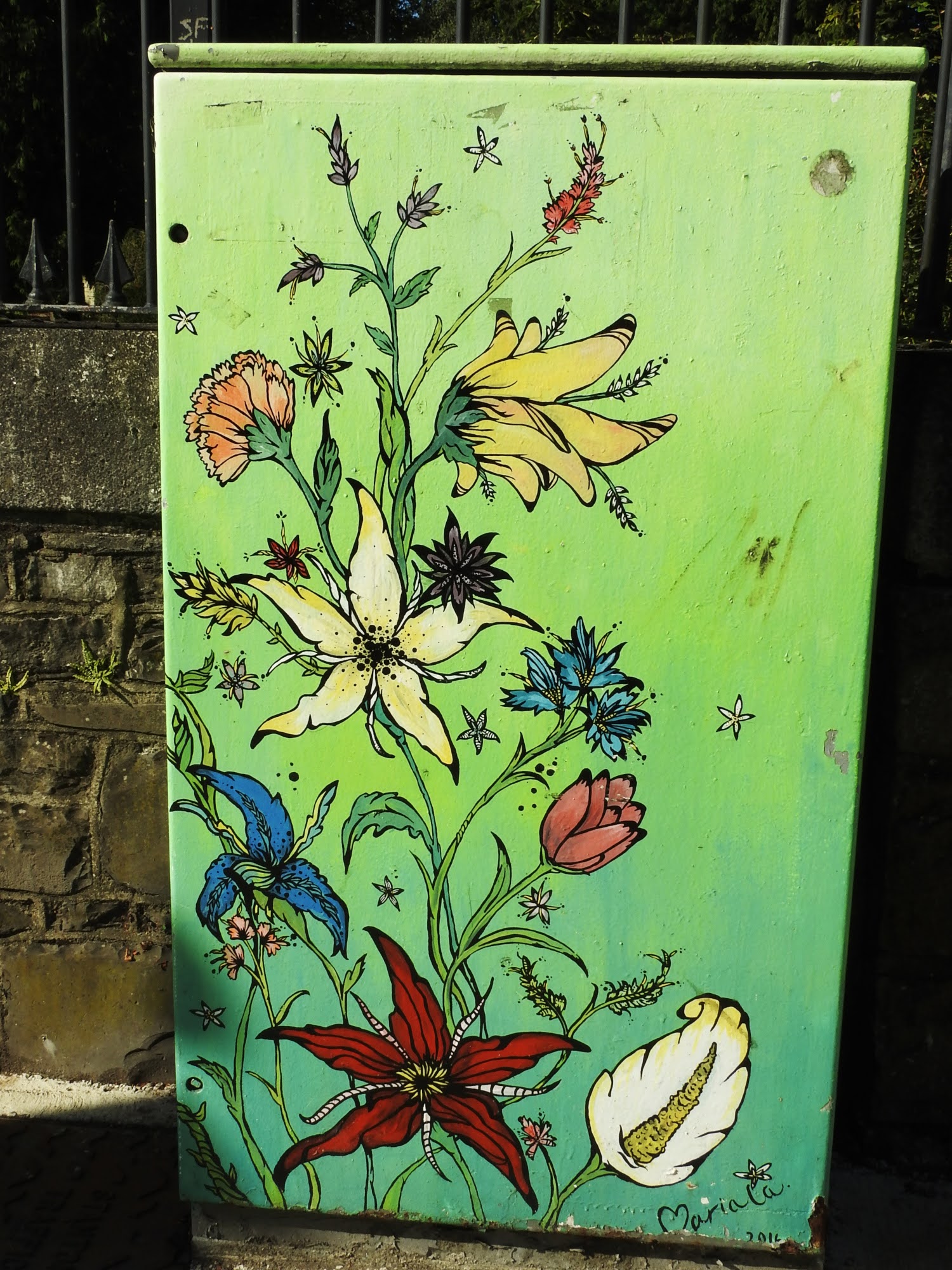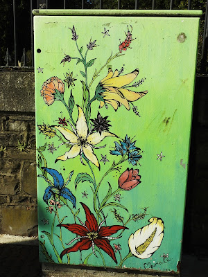 As well as going to hear Sean Ronayne when I visited my sister last month, I was able to collect my Christmas present - which was a session in a pottery painting studio just round the corner from her - Potteria . It's always buzzing any time I walk past, lovely to see something creative thriving. You choose your piece, and the price for a 2 hour session is dependent on the cost of your chosen piece. You can choose six colours of glaze - so different when painting it on that the glazed tiles showing the finished colour are very necessary. It was her third time there - the first time she did a tile for beside her front door, the second time she chose a little vase and this time she did a liquid soap dispenser. I went for a butter dish as being something practical that I would enjoy using. We had our session when I visited for her birthday in January, but you have to leave your piece for firing, so it's not an instant gratification project. She collected them in early February, but I didn't get down that month.